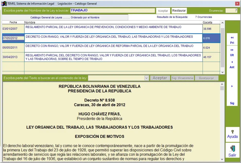 Temis Sistema de Gestión de Personal es una Enciclopedia que contiene gran cantidad de información relacionada con las prestaciones sociales tales como: legislación, decisiones del Tribunal Supremo de Justicia, glosario de términos, tablas informativas y de cálculo y una Guía Comparada de la nueva ley con la ley derogada.